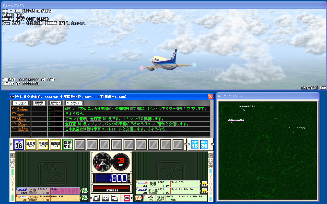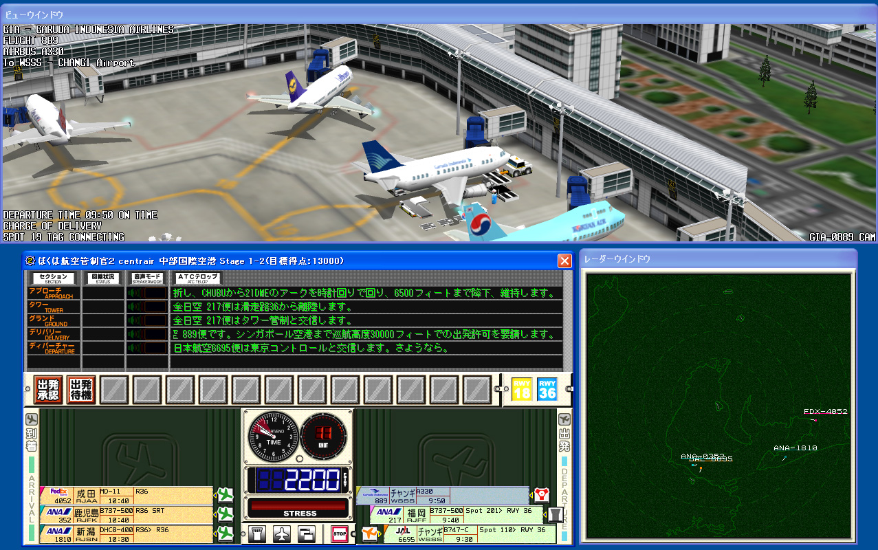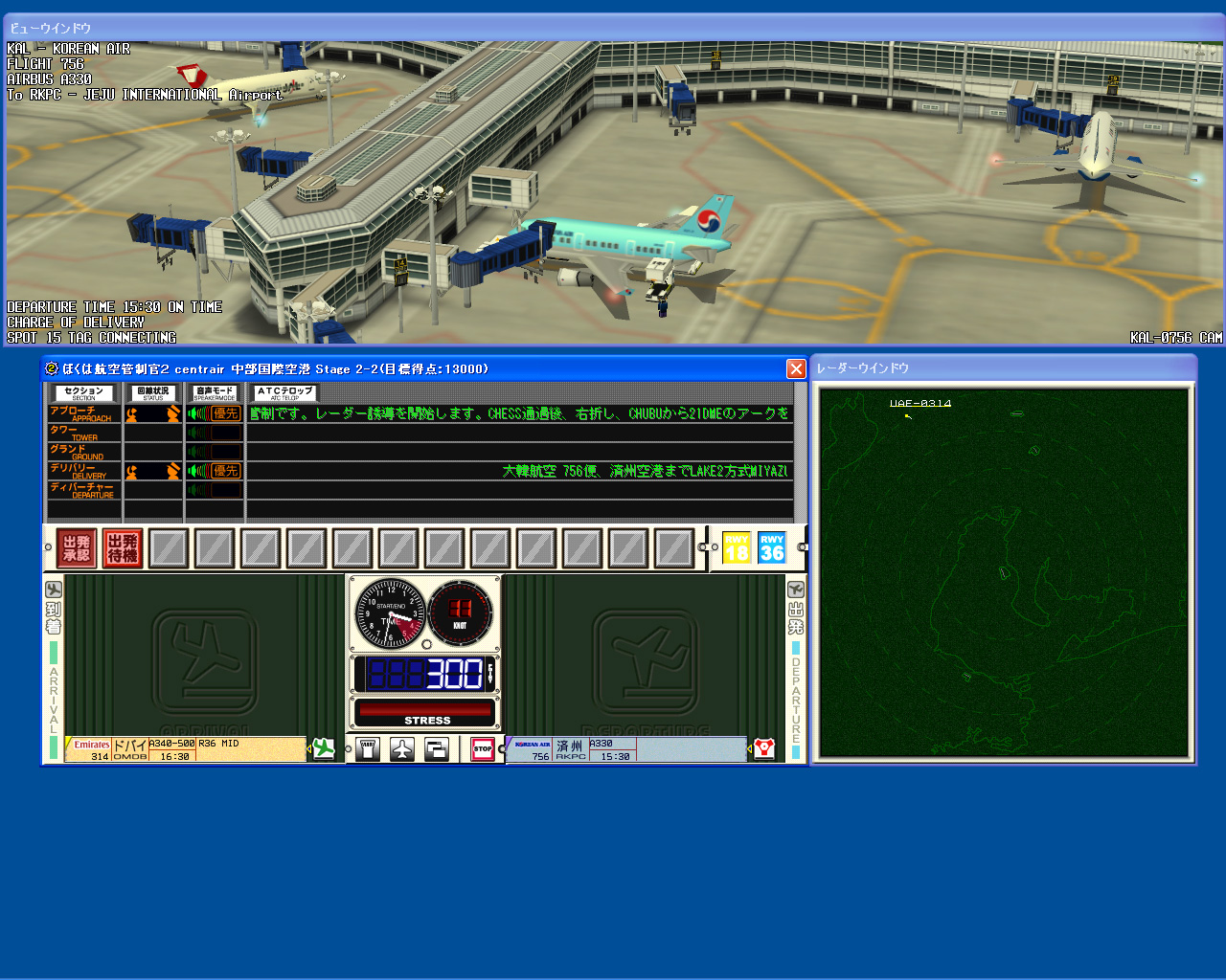 「ぼくは航空管制官2」は,名前のとおり空港の管制業務をテーマにした,シミュレーション風アクションパズルだ。舞台となるのは国内各地の空港で,原則的に作品1本で1空港が取り上げられる。本作で登場するのは,タイトルがそのまま示すとおり,国内で最新の国際空港であるセントレア=中部国際空港,というわけだ。