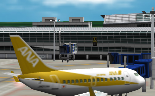 さて話を変えて,空港ごとのもう一つの特徴である,雰囲気について。本作は,登場する機体や航空会社が多彩である点も大きな特徴になっている。新鋭の国際空港だけあって,数多くの外国航空会社の機体が登場し,全体に華やかだ。国内に関しても,本作でしか見られない,全日空機のボーイング737-700型・1番機「Gold Jet」が姿を見せてくれる(この機は実際に,セントレア−台北便に就航している機体だ)。土地柄,トヨタ自動車のチャーター機であるビジネスジェットが出てきたり,JAL系列のJ-Airに所属する小型ジェット機がタッチ・アンド・ゴー訓練をしたりと,イベントのバリエーションも豊富だ。