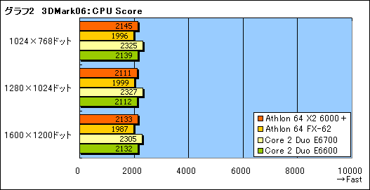 単に高解像度で値が揃っていくのであれば,グラフィックスカードのボトルネックを指摘できそうだが,ここではそうなっていない。メモリコントローラを内蔵するため,メモリレイテンシが低くなっているAthlon 64ファミリーのメリットが最大限に発揮されたと見るべきだろう。“Athlon 64 X2 6000+ならでは”の特徴というわけではないものの,憶えておいて損はないデータだ。