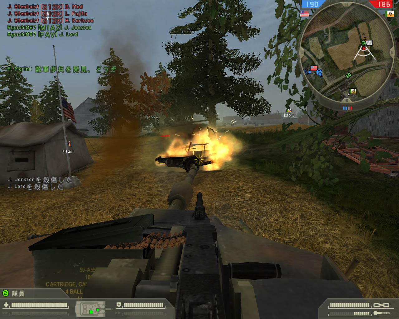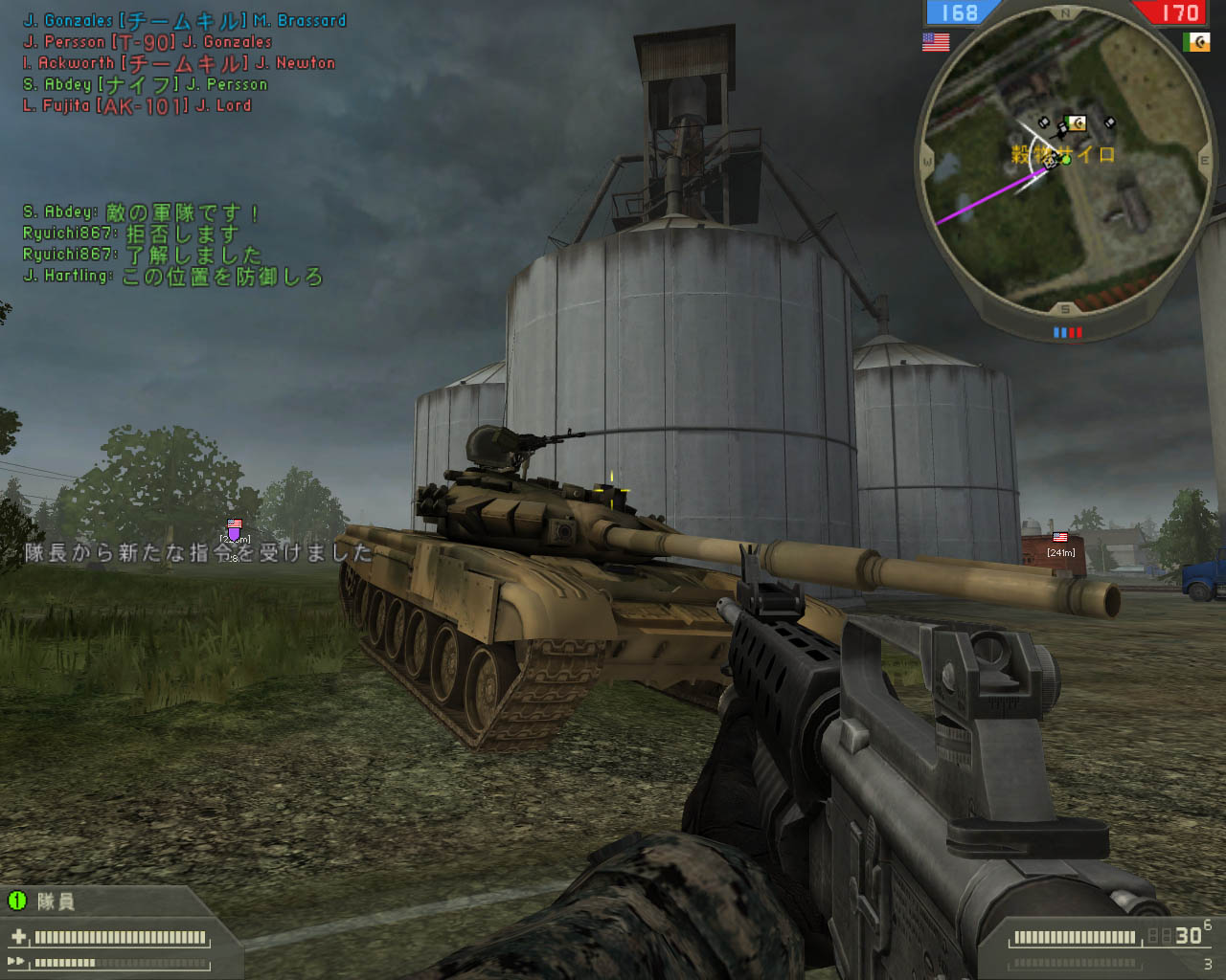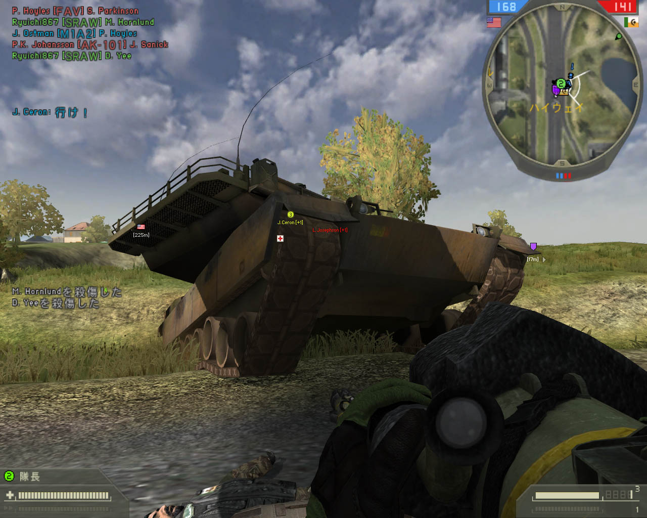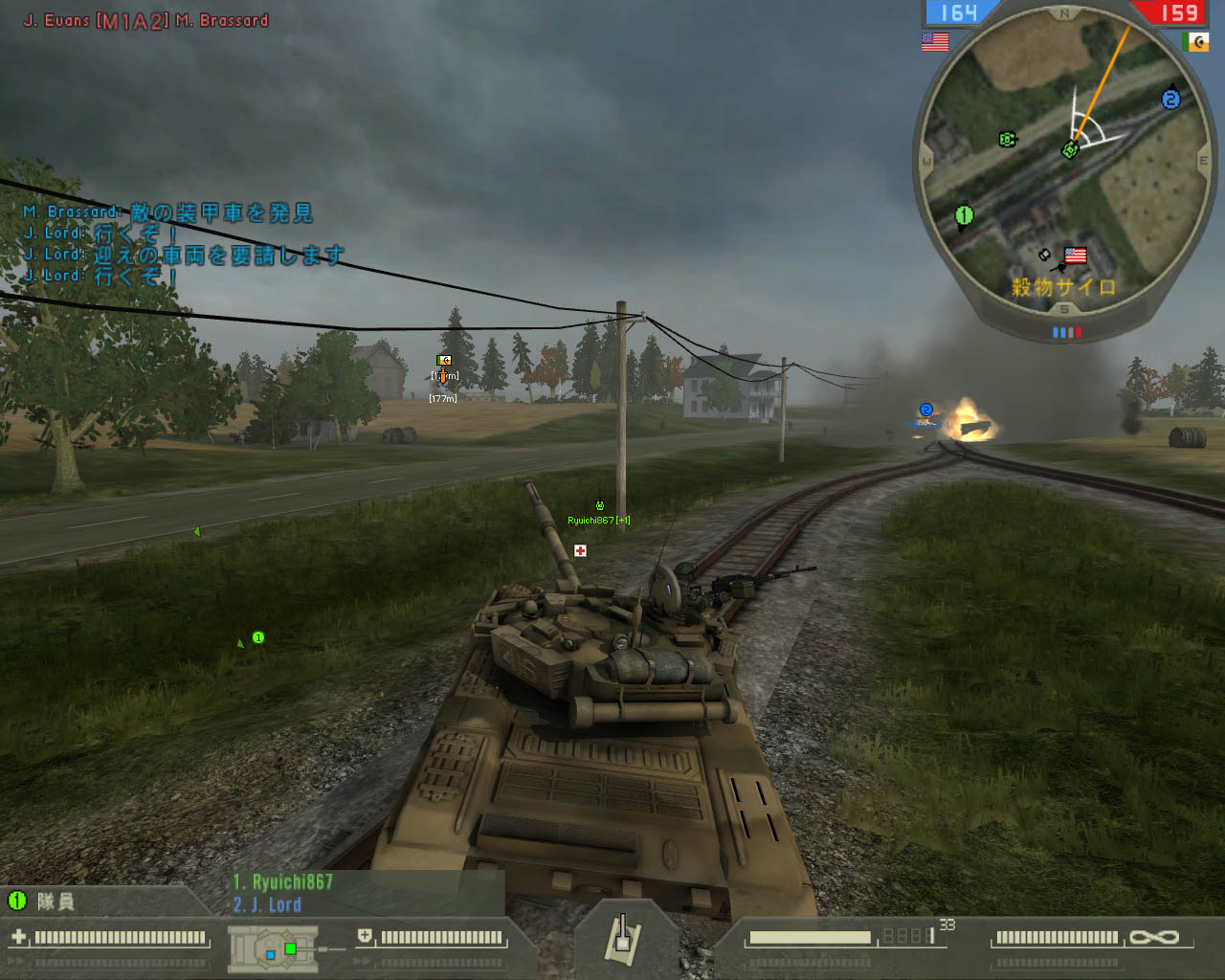 偵察ヘリコプターは,前進につれて周囲の敵を味方に自動的に知らせるというUAV(無人偵察機)のような機能を持っている。ただし,搭乗できるのはパイロットを含め3名で,小隊システムとの兼ね合いが悩ましい。小隊長が偵察機に乗り,敵を見つけ次第隊員が降下,敵の殲滅を図る。で,やられたら機上にリスポーン,という図式も美しいような気がするが,人数的にそれはできないのだ。3名からなる偵察小隊を編成し,コマンダーの命令によって危険区域上空を飛行する,という使い方がいいだろう。そうなれば,UAVが複数あるようなもので,隊員の得られる情報も飛躍的に向上するはずだ。