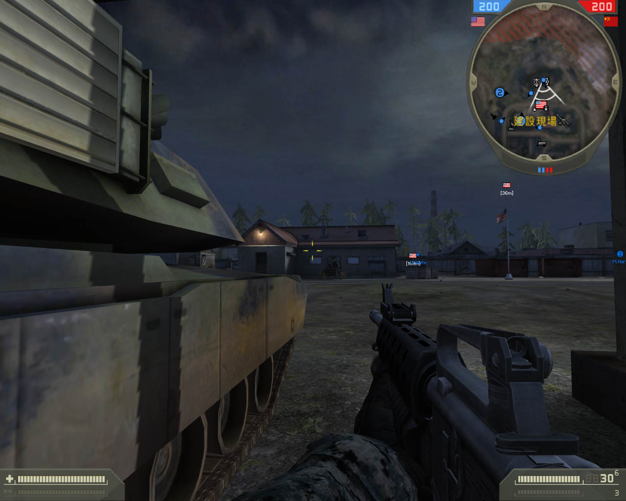 アラスカの数少ない不凍港,バルディースに上陸した中国軍は重要な石油パイプラインの占拠を目指し,アメリカ軍の守備隊はそれを阻止するため,必死の抵抗を試みる,という設定。日の沈まない夏のアラスカはマップ全体に薄暗く,こういうときこそ,拡張パック「バトルフィールド2 スペシャルフォース」で登場した暗視ゴーグルの出番かと思ったが,残念,それはない。大きな川を挟んで左右に敵味方が対峙するという,ちょっと本編の「FuShe Pass」を思わせる造りだが,あれほど高低差は激しくない。攻撃機と偵察ヘリコプターが登場するものの,画面が暗くて遠距離の敵の目視が難しいだけに,敵の発見,すばやい拠点占領など,偵察ヘリは使いようによって重宝するアイテムになる。32人用と64人用マップは,拠点の数が異なるだけで,基本的に同一だ。