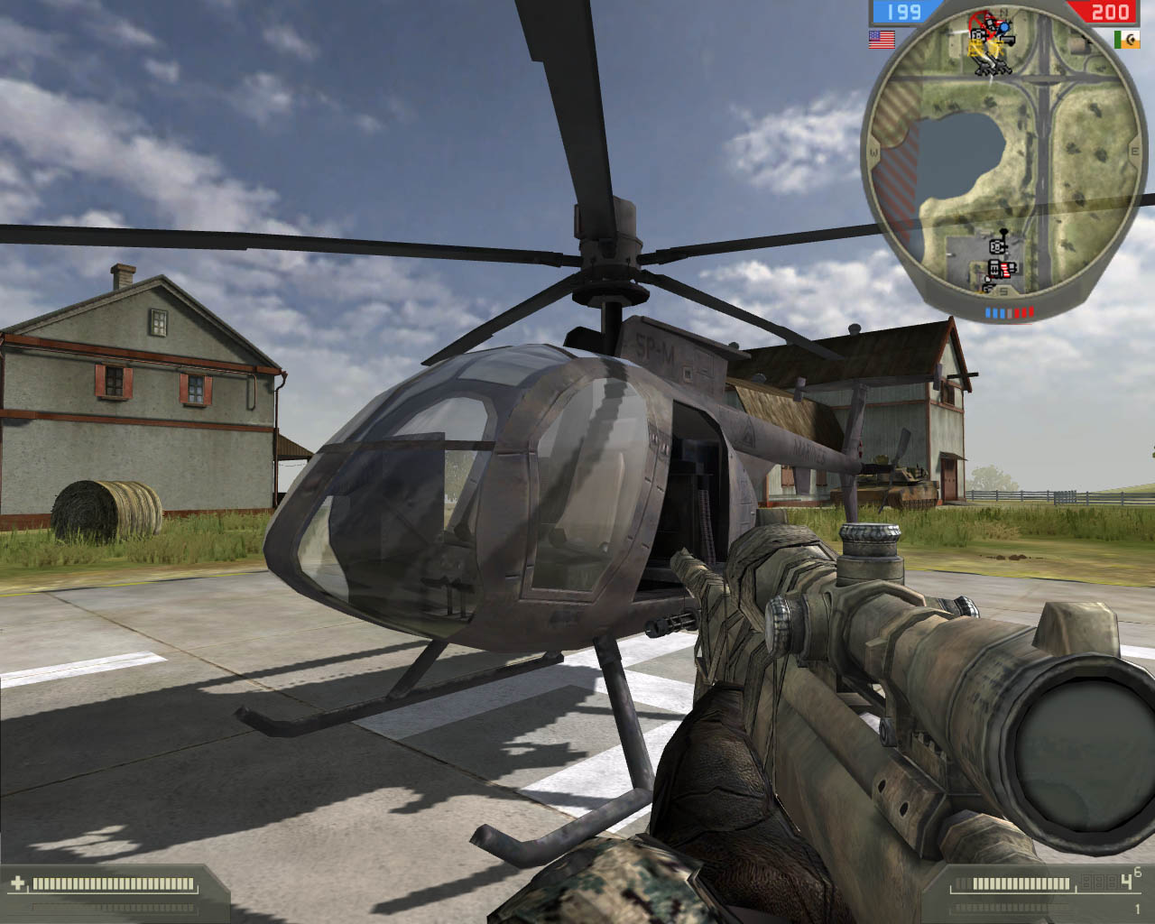 “リトルバード”の愛称で知られるOH-6Aは,ベトナム戦争で最初に使用されて以来,エンジンの換装,装備の変更などで数々のバリエーションが生まれ,現在でも使用され続けている汎用小型ヘリコプターだ。ゲームに登場するMD-530はその偵察バージョンで,7.62mm機関銃を装備する。パイロット以外に二人の兵士を乗せられるが,ほかの輸送ヘリコプターのような搭乗員の固定武装はない。偵察ヘリコプターのポイントは周辺の敵の存在を味方のミニマップ上に表示できることにある。この機能を使いこなしてこそ勝機が見えてくるだろう。