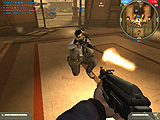 フラッシュバンは,これを食らうと画面が真っ白になり,よろけているうちにたいてい撃たれる。また気をつけなければならないのは,自分の投げたフラッシュバンの爆発も直視すると画面が真っ白になり,よろけているうちにたいてい撃たれること。そんなやつはいないだろうと思う人もいらっしゃるかもしれないが,ちゃんとここにいる。催涙ガスも,浴びると画面が「ぐにょ」っとなって「あ,泣いてやがる」な感じになり,同時に激しく咳き込む。どちらも特殊部隊っぽくて面白いが,使いどころが難しい。敵兵が集まっているところへ背後からこっそり投げ込めば効果は高いだろうが,そういうおいしい局面には,なかなか遭遇しないものだ。
