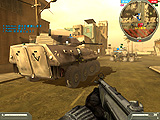 BF2本編は「ウォーマシンによるハイテク戦闘」がメインで,高い殺傷力を持つ戦闘機や戦闘ヘリコプター,戦車などを巧みに使いこなさなければならず,歩兵の戦闘はどちらかというと“従”の立場だった。今回,人対人の戦闘を描いたBF2SFをプレイしてみて「これだよ,これ!」と膝頭をぶっ叩く人も多いのではなかろうか。地上兵器しか登場しないマップ「Strike at Karkand」が,パブリックサーバーで一番人気というのも,そのへんの事情を物語っているのかもしれない。