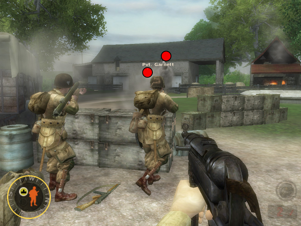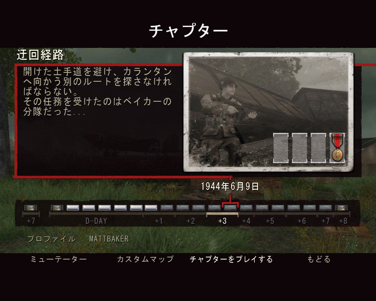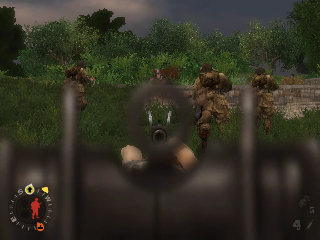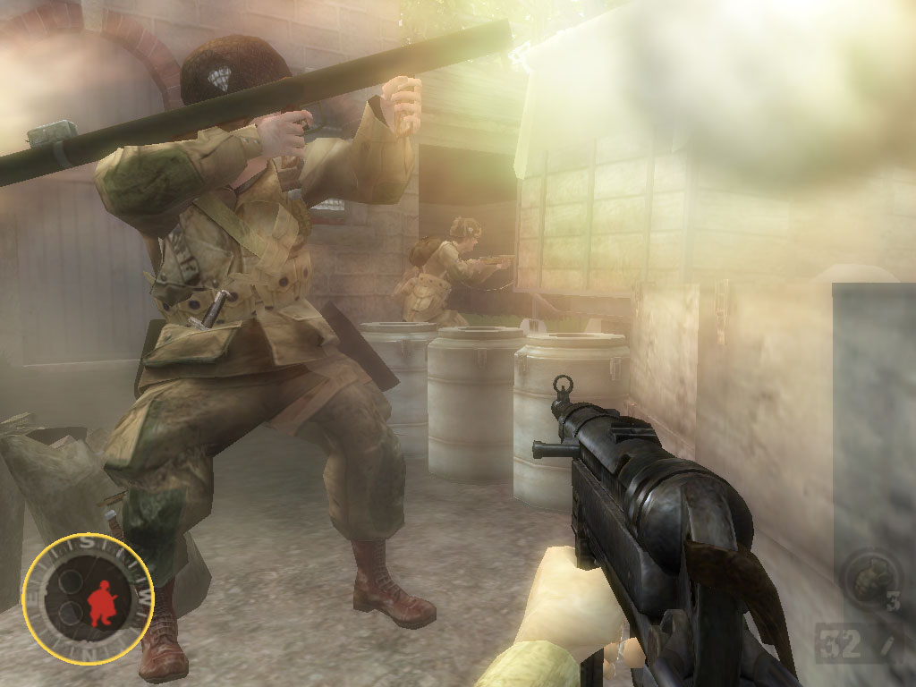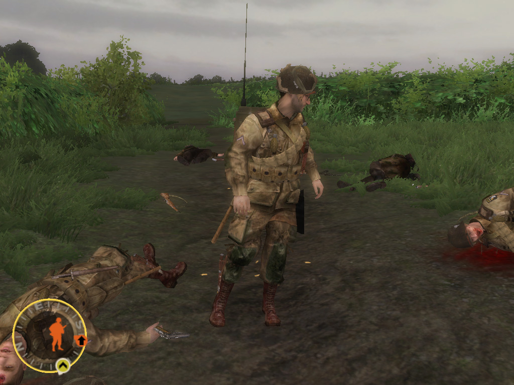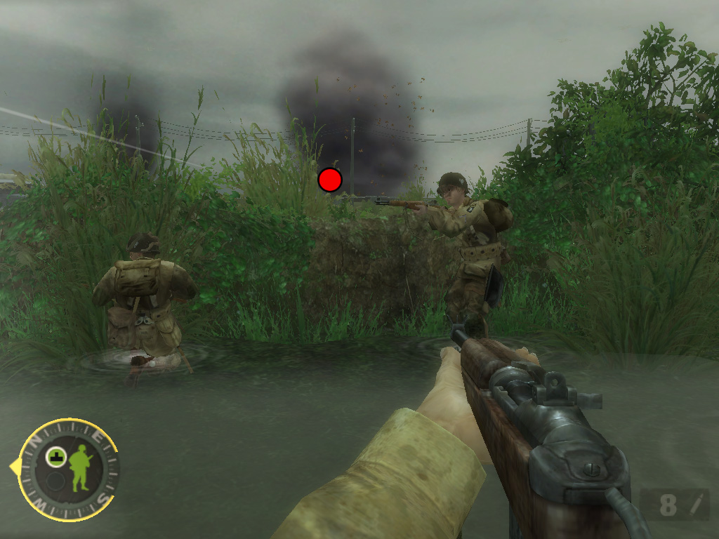 プレイヤーは,米陸軍101空挺師団第502パラシュート歩兵連隊の分隊長マット・ベイカー軍曹となって,この8日間の激戦を生き抜かなければならない。この作品では「史実に基づいた設定が徹底」されており,作戦行動や時間軸はもちろんのこと,部隊に所属した兵士の氏名,さらに当日の天候までもが史実通りに再現されているのだ。アメリカ国立公文書館の資料や現地に出向いてのロケなど,膨大な資料に基づいているようで,それを誇示するかのように,ゲーム内のメニューから資料の一部を閲覧できる。