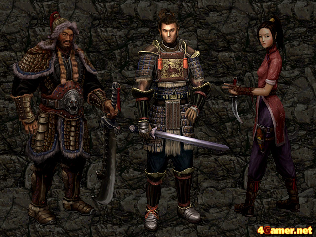 | 選択できるプレイヤーキャラクターは三人用意されている。右からパワータイプ,バランスタイプ,スピードタイプの特徴を持つ。通常技や武術の特性がかなり異なるが,本作最大の魅力であるコンボを極めたいなら,スピードタイプを選ぶのが無難 |