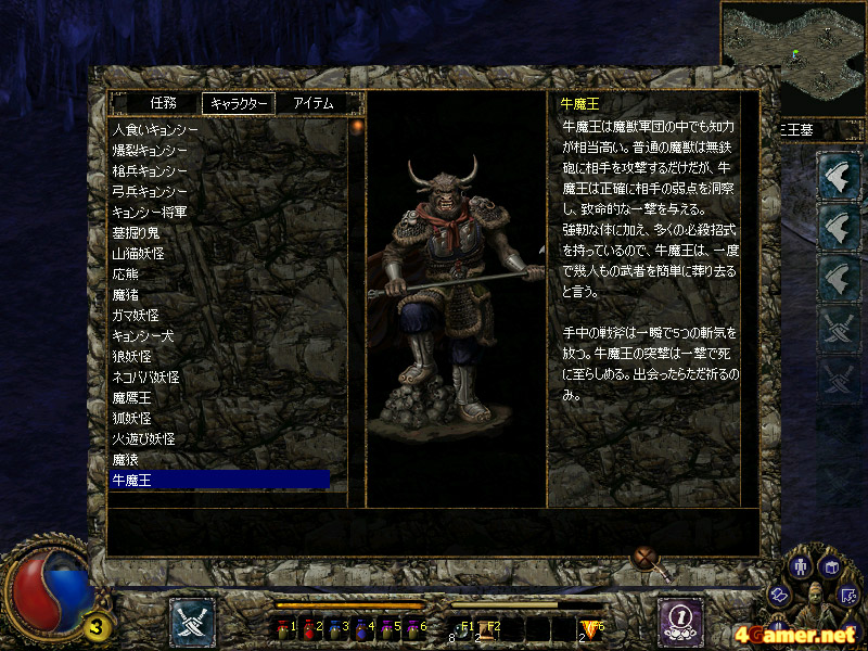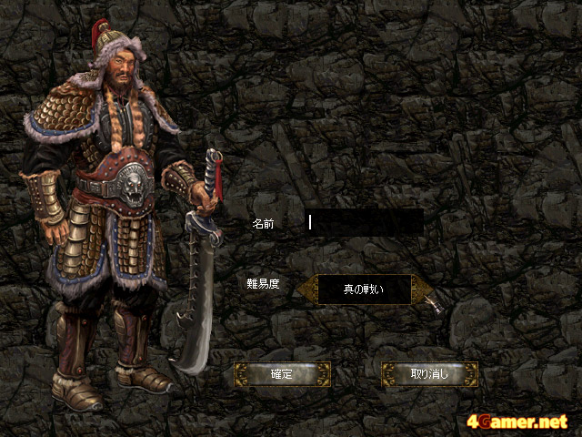 キャラクター作成時にはゲームの難度を任意に選択できる。易,中,難,真の戦いという4段階から選べるので,プレイヤーの操作技術を問わずプレイすることができそう。ちなみに最高難度の「真の戦い」では,ゲーム序盤の敵の攻撃を一発もらうだけで,半分近くの体力を奪われてしまう |