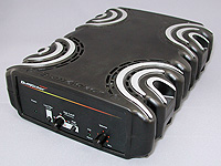 | 低域専用アンプ。今回試用したサンプルには付属していなかったが,製品には縦置き用のスタンドが添付されるようだ |