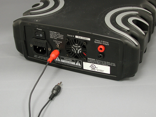 一般に,アナログ5.1ch以上の出力に対応したPC用サウンドデバイスはアナログミニという端子を採用しているが,低域専用アンプ側の入力端子はAV機器で標準的なアナログRCA。そこでButtKicker Gamerでは,標準でアナログミニ→アナログRCA変換ケーブルが付属している。アナログRCAに変換すると,一つだった端子が赤黒の二つになってしまうが,低域専用アンプの「Line Level Input」とつなぐのは赤いほうだ。黒は,センタースピーカー用となるので,アナログ接続のマルチチャネルスピーカーシステムがあるなら,そのセンタースピーカーと接続しておこう。センタースピーカーがミニピン接続なら,適宜変換すればOKだ。ゲームサウンドをヘッドフォンなど,2chサウンドシステムで聴いているなら,黒端子は無視してかまわない。