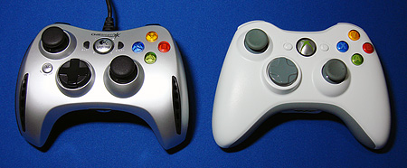 | Xbox 360パッド(右)と並べてみると,いかに形状がよく似ているか分かる |