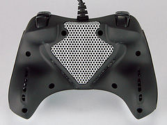 ChillStreamのグリップは,複雑な凹凸からなる独特の形状をしているのだが,グリップに手を添えると,指が凹凸の“溝”に填り込むかのように,収まるべきところへ収まる。また,プラスチック製パッドの場合はどうしても汗ばんでくると滑りやすくなるのだが,ChillStream Technologyによる冷却と,グリップ部から本体背面にかけて全面的に採用されているラバーコートのため,まったくといいほど滑らない。