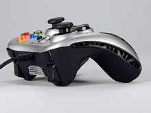 というわけで,まずは本体を概観してみると,左手親指で操作する位置にデジタル方向キー(以下 十字キー)とアナログスティック,右手親指で操作する位置にもう一つのアナログスティックと4個のデジタルボタン(A/B/X/Y)が配されている。また,パッド上部左右にはそれぞれデジタルトリガーボタン(LB/RB)とアナログトリガー(LT/RT)を用意。中央部にはリングライト付きの「Vistaガイドボタン」と,「バックボタン」「スタートボタン」が置かれるレイアウトだ。