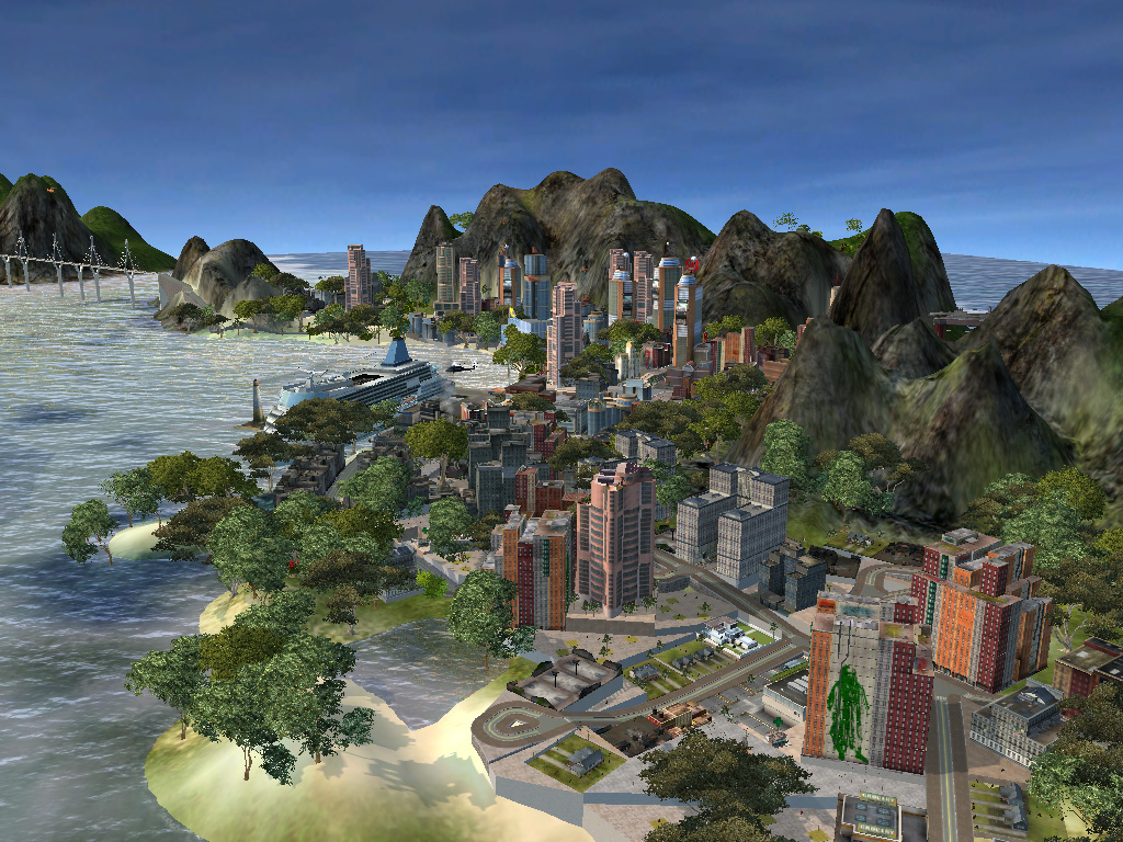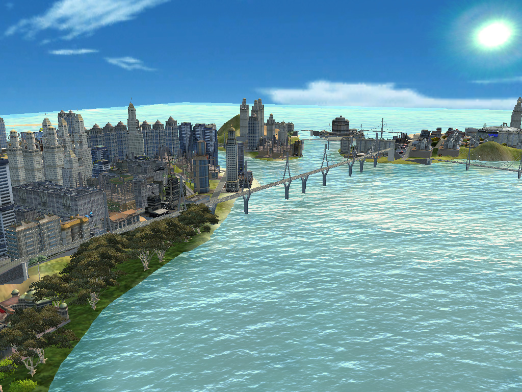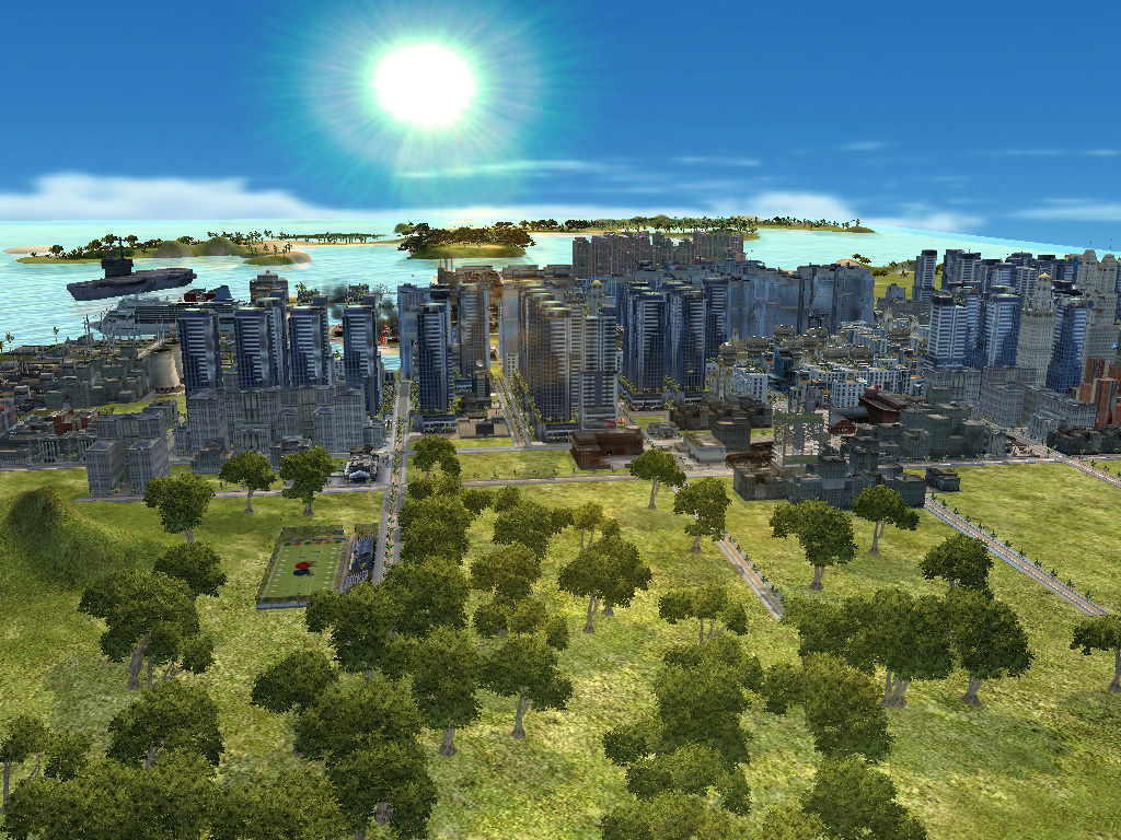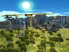 | 緑とビル,青い空と太陽のコントラストが美しい。見ているだけで楽しめる,久しぶりの傑作箱庭ゲームだ |