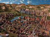 | 建物は約200種類にも及ぶ。そのほとんどがプレイヤーの自由に建てられるので,思いのままの景観が作れる | ズームインして住民の生活を眺めるのが楽しい。住民の一人一人すべてに名前があり,住居と職場も設定されている | 整地は基本的にできないので,高低差のある土地をいかに克服するかも都市計画のポイントになる |
