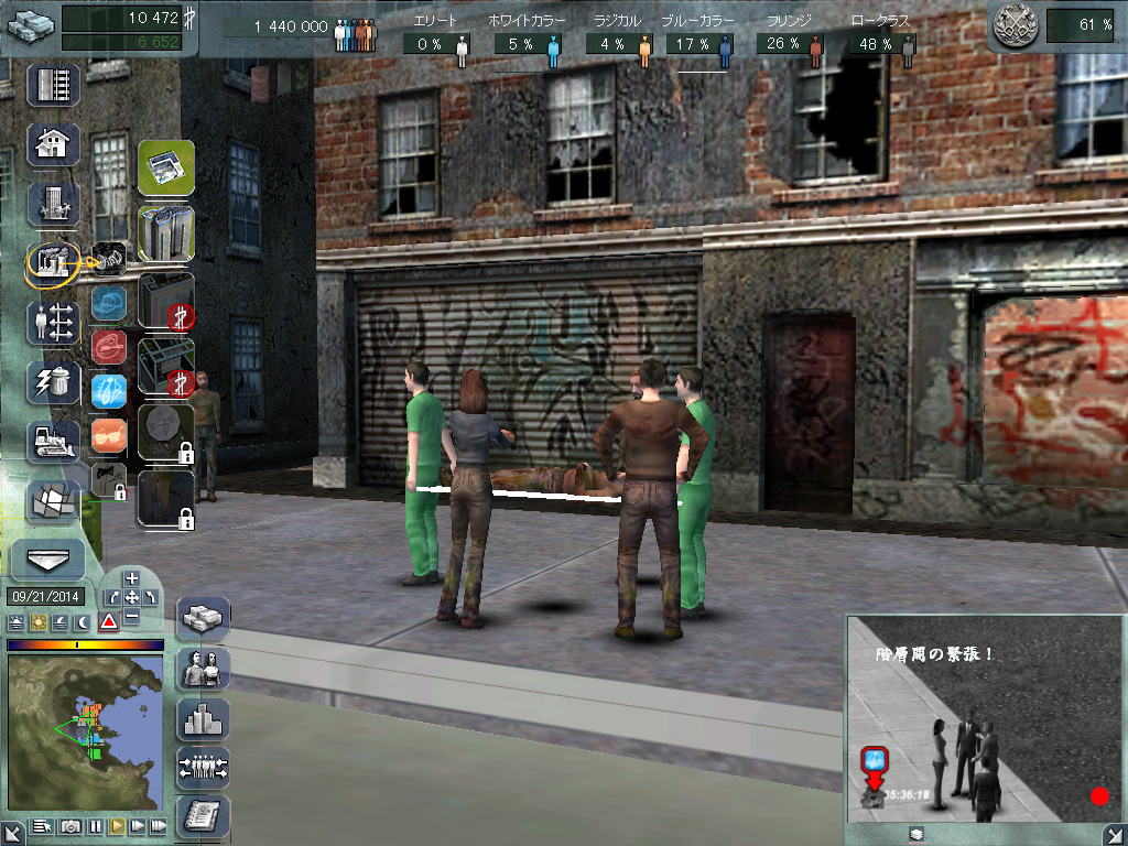 そこで市長の,公共サービスの腕の見せどころとなるわけである。もう一つの方法として,警察を利用して強制的に封じ込めるという策もあるが,このあたりの一連のシステムはPopTop Softwareの「トロピコ」にかなり近いものがある。
