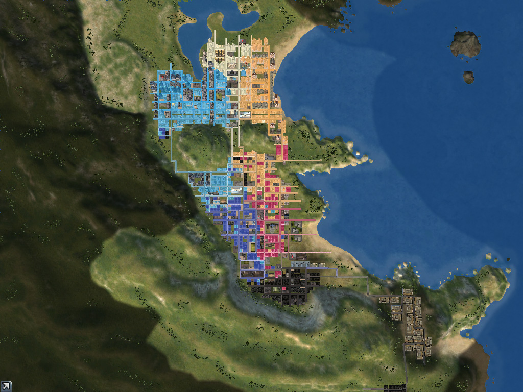実際にどの階級の住民が入居するかは,近くに職場があるか,公共サービスが近くにあるか,遊ぶ場所が近くにあるか,近隣に対立する住民が住んでいないかなど,さまざまな要素が複合されて自動的に決まる。そこであらかじめ「市役所のこっち側にはブルーカラーを」「反対側にはフリンジを」というように見通しを立て,計画的にほかの施設を建設して,うまく住民を区分けして入居させるようにするのだ。