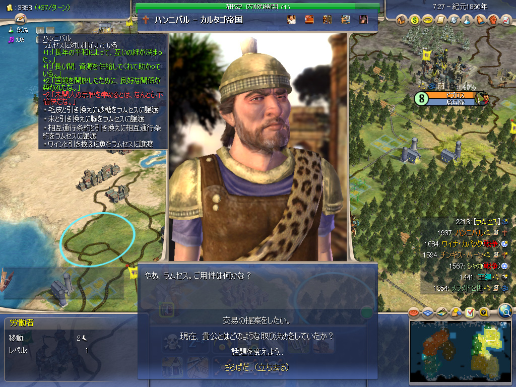 | カルタゴ文明といえばハンニバル。「将軍」ながら,さすがは商業帝国カルタゴの指導者,金融志向を持っている | 新登場文明も,もちろん固有ユニットを持っている。ヴァイキングといったら,ベルセルクで決まりでしょう | 朝鮮文明では,小型ロケットランチャーとも言える火車。カタパルト代替というのはどうかな,とも思うが |