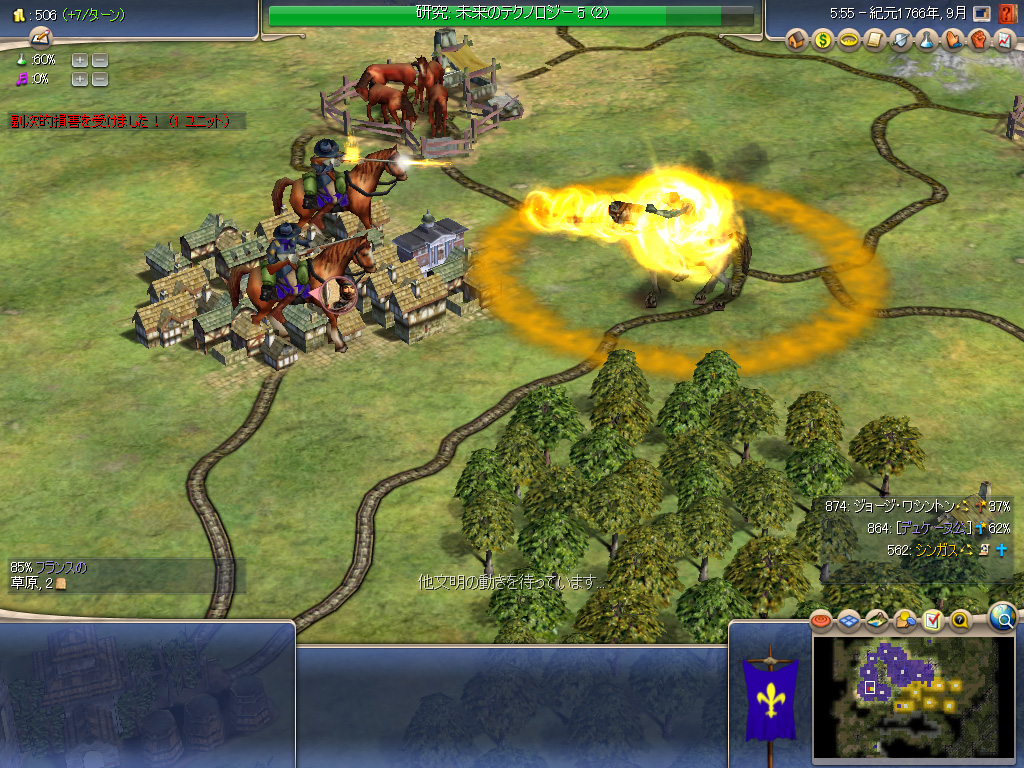 | 「Genghis Kahn」シナリオは,他文明を攻略することで技術を獲得していく展開になる。シナリオが設定されたシングルRPGのような展開といえそうだ |