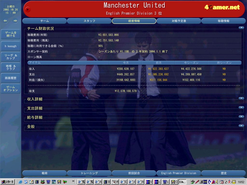 | 下部リーグのチームを昇格させて栄光を勝ち取るのもロマンがあっていいが,最初のうちは資金を不自由なく使える裕福なチームの監督となってゲームに慣れたほうがいいかも。もっともそういうチームは監督への要求も厳しいが |