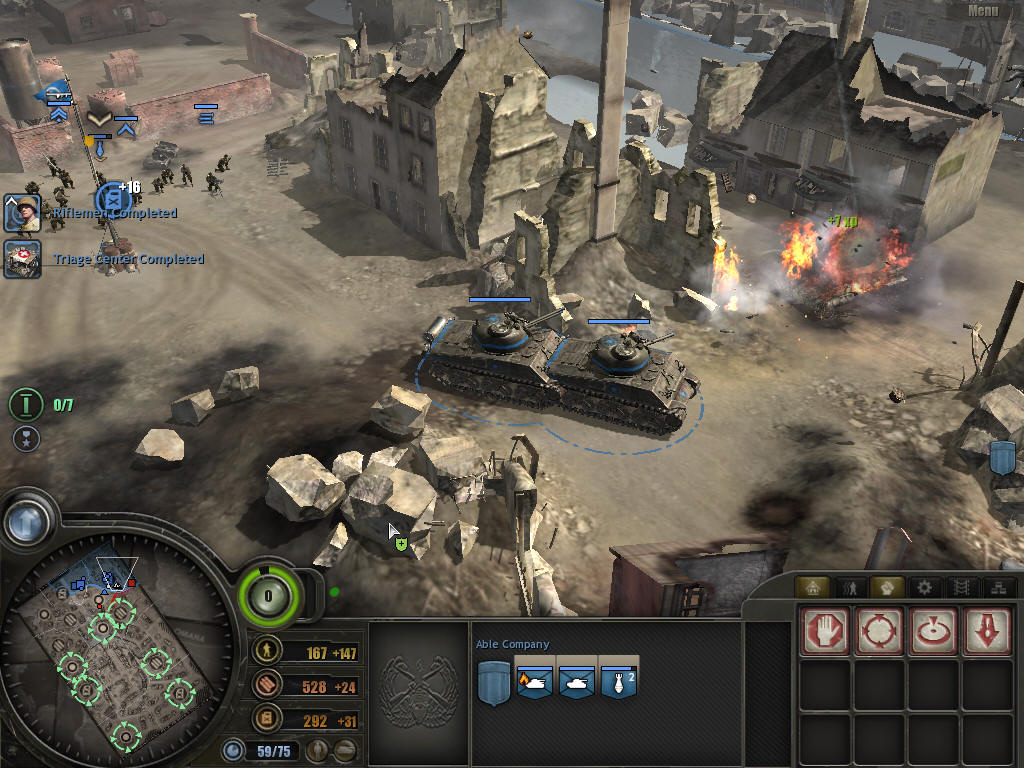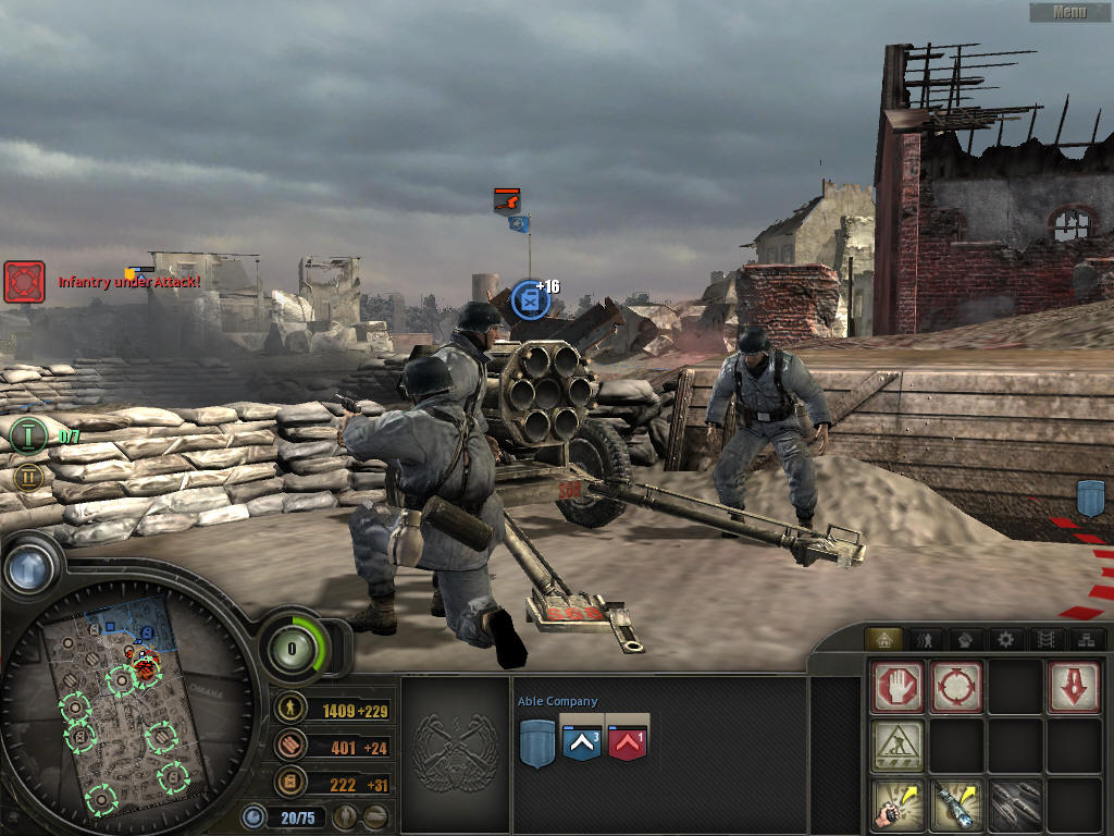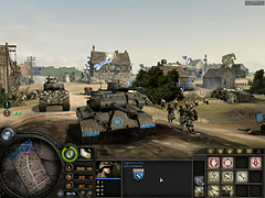 生産されたユニットは「援軍」というスタイルでマップ上に出現し,生産から登場までのタイムラグは非常に短い。興味深いのは後述する「Company Command System」で,簡単にいうとテクノロジーツリーを使ったユニットのアップグレードだ。このアップグレードによって工兵がパイロ(火炎放射兵)を兼ねるようになるなど,ユニットの種類は意図的に減らされているようだ。