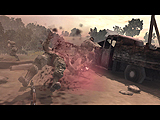 また,各ユニットのAIはかなり秀逸で,突然の攻撃に対するカバーやチームでの行動など,非常にディテールに富んでいる。例えば,ビルの廃墟を行軍していていきなり相手の攻撃を受けた場合,ユニットは近くの壁に張り付いたり廃車の陰に身を潜めたりして自動的に応戦する。もっとも,遮蔽物の材質によって防御力が異なるのだが,その判断はできないようだし,突進してくる戦車に対して手榴弾や映画「プライベート・ライアン」でおなじみの“粘着爆弾”(Sticky Bomb)を自動的に投擲することもしてくれない。それでも,こうした優れたAIによって,なるべくプレイヤーの手を煩わせないようになっているという印象が強い。