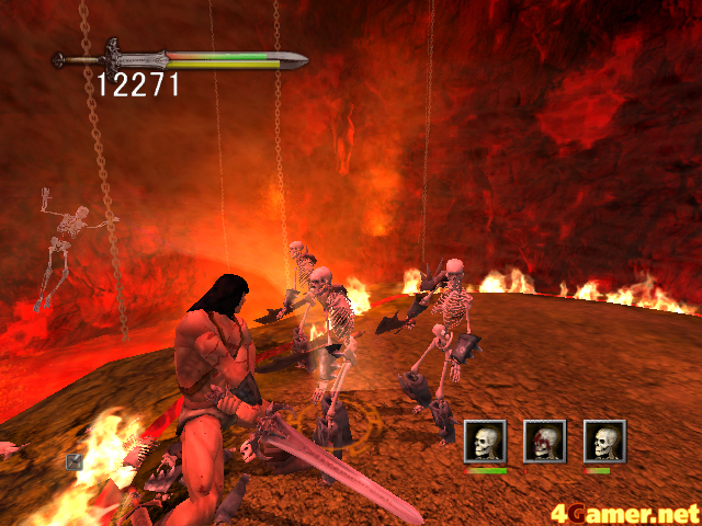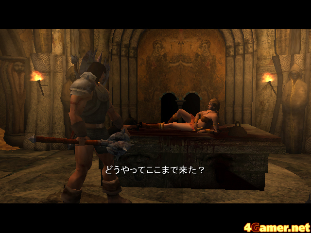 そんな某月某日,ロバート・E・ハワードの小説「コナン」がアクションゲームになると聞いて,筆者は小躍りした。コナンといえばヒロイックファンタジーの原点ともいえる小説で,マッチョな剣士が大暴れするという話。もちろんコナンは魔法など使えるわけもなく,文字通り"力こそ正義"の男なのである。アクションゲームというからには,きっと爽快に剣をぶん回して敵をバッタバッタと倒すものに違いない。しかも嬉しいことにライブドアが日本語へのローカライズをしてくれるという。こいつは楽しみだ。やっぱりストーリーが分からないと切ないし。
