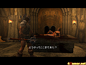 | 雪山で登場する狼の噛み付き攻撃には注意。なかなか放してもらえないのでボタン連打で回避しよう | 本作での罠は一撃で死んでしまうこともあるほど強力。罠を見たらその前でセーブを忘れずに | この場所はカメラアングルが固定なのでプレイし辛い。ちょっとでもミスをすると下に落下……意地悪! |
