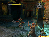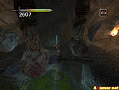 | ゲームのセーブは聖なる石を使って行う。が,一度のセーブにつき一個消費するので場所を考えたい | 敗者復活のステージ。何度も利用すると,登場する敵の数が増えていく。写真のようにならないように注意 | ゲーム中盤での敗者復活ステージ。パッと見,ここにボスがいてもおかしくないほどの迫力だ |