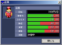 次にゲーム中の変更点だが,まず目に留まるのは店員の雇用というルールがなくなった点だろう。シリーズ従来作品では,店員は履歴書でパラメータを見て雇っていたわけだが,今作では店舗を開店したときに,店長1人と店員2人が初期パラメータで配置される。人事異動システムもなくなっているので,例えば新店舗を開店したときに,すでに育っている店員をその店に配置換えする,といったことはできない。さらに困ったお客さんを「つまみ出す」コマンドもなくなったので,プレイヤーは今いる店員達がすべてを処理できるよう,より計画的に行動する必要が出たといえよう。