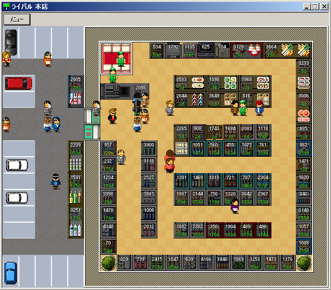 POS機能が追加され商品管理がしやすくなった半面,商品については新たにプレイヤーの頭を悩ませる要素も追加されている。「商品期限」がそれで,食品や雑誌など実社会で販売期間が決まっているものに対して,店頭に並べておける期限が設定されているのだ。期限が過ぎた商品は品切れ扱いとなり,そのぶん店員の補充作業が増える。食品の陳列に関しては,新アイテムとして「低温冷蔵庫」が登場しており,これを使えば期限を2倍に延ばすことも可能になっているが,維持費は割高だ。なかなか考えさせる要素となっている。