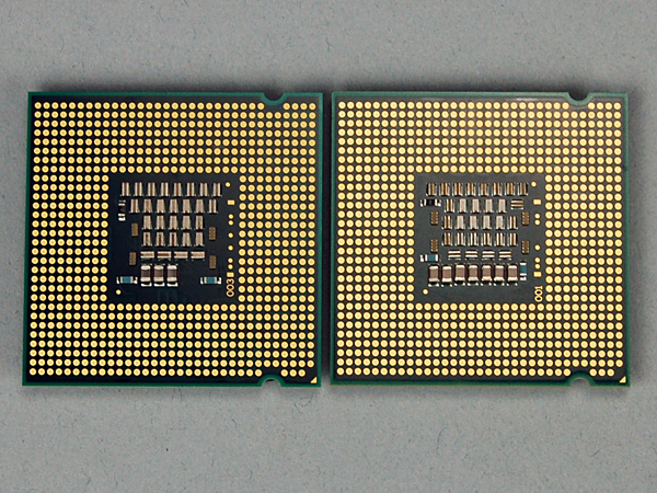 | Core 2 Duo E4300(左)とCore 2 Duo E6300(右)の“底面”を比較してみた。部品の実装点数が少なくなっている |