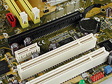拡張スロットはPCI Express x16 ×1,PCI Express x1 ×1,PCI×2。PCI Express x16スロットの周りに,背の高いコンデンサなどといった障害物はなく,ほとんどのグラフィックスカードを問題なく装着できる |