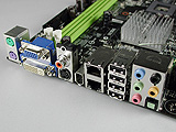 I/Oインタフェース部には,1000BASE-T LANや,eSATAポートが用意される。ゲーマーが利用することはないだろうが,Intel 945GT Expressはグラフィックス機能を内蔵するので,アナログRGB出力も用意 |