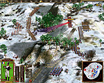 | キャンペーンは,物語仕立てで進んでいく古典的なタイプ。プレイの練習的な意味合いが強い | これは鉄を産出する村。このような村がマップ上に散在していて,それを占領することで資源を獲得できる | 村で産出された資源は荷駄に載せられて町の公会堂へと運ばれる。輸送路の安全確保に注意しよう |