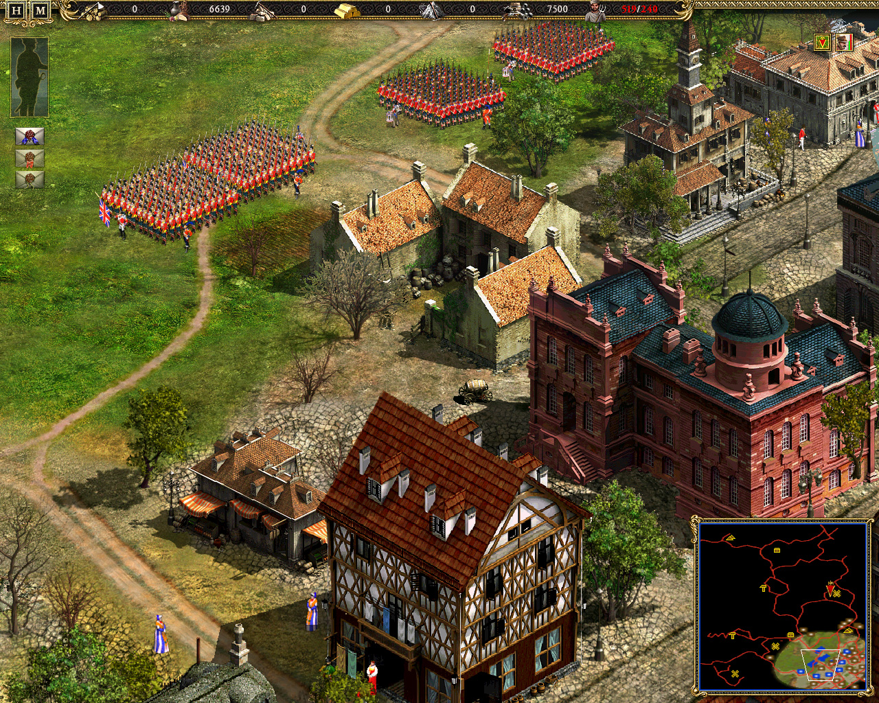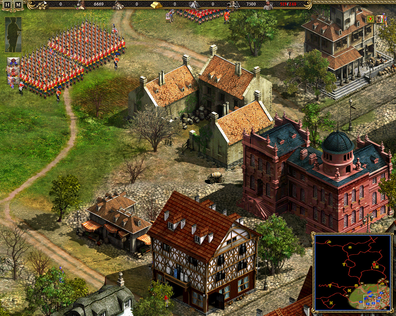 このシステムによって内政は大幅に簡略化されたが,村と町の公会堂の間を荷駄が往復するのが大きなポイント。その間の交通路の掌握が必要という,新しい戦略概念が取り入れられたのだ。それぞれの村では1種類の資源しか生産できないので,すべてのルートを維持するのはなかなかたいへんだ。