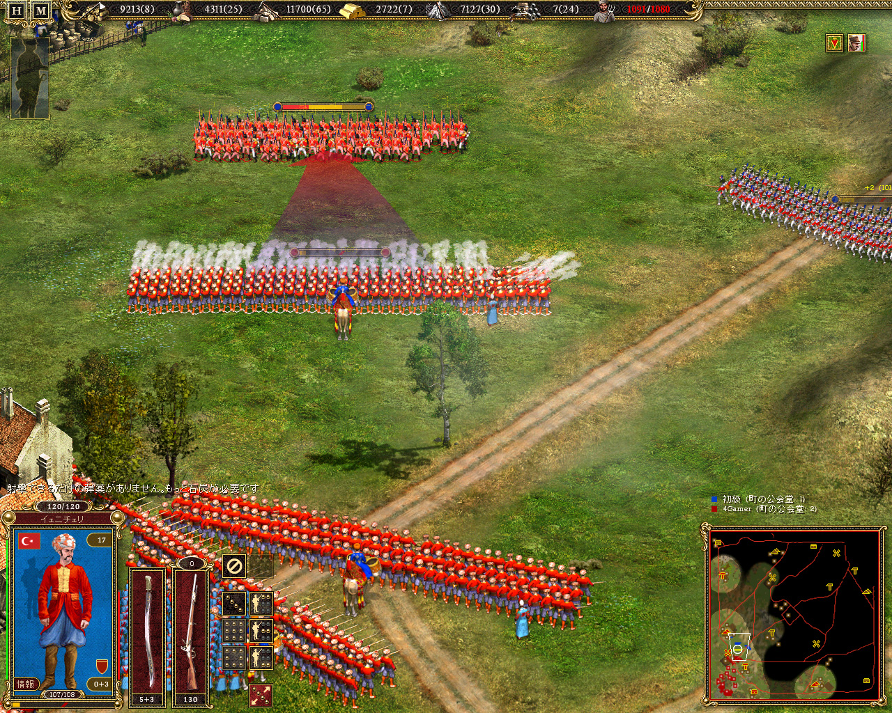 | ナポレオン戦争をモチーフとして,マスケット銃の射撃タイミングを中心に独特のアクション性を備えたRTS「コサックスII〜皇帝ナポレオン〜」。ボイス部分は英語だが,それ以外はすべて日本語化されている |