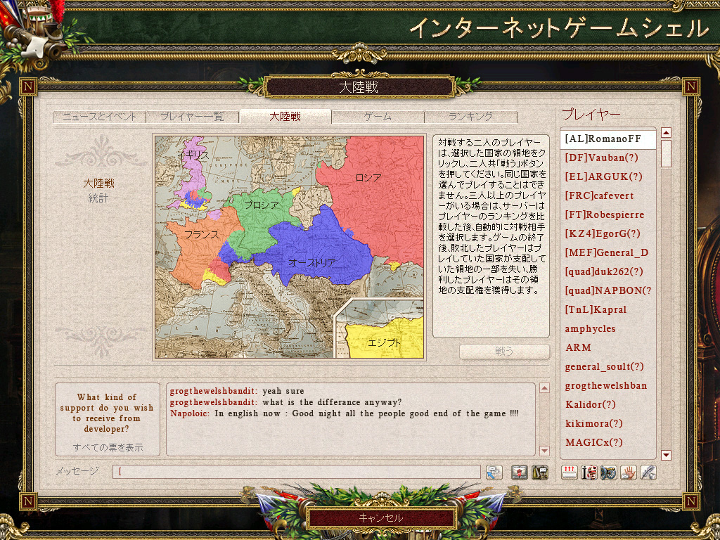 | マルチプレイの公式サーバー。このように,ヨーロッパの領土を奪いあうゲームモードもある | 従来作品にあったランダムマップはなくなり,既製のマップを選んでプレイする形式になった | 本作で重要かつ面白いのは射撃タイミング。うまく相手の陣形を崩せたときの快感は,なんともいえない |