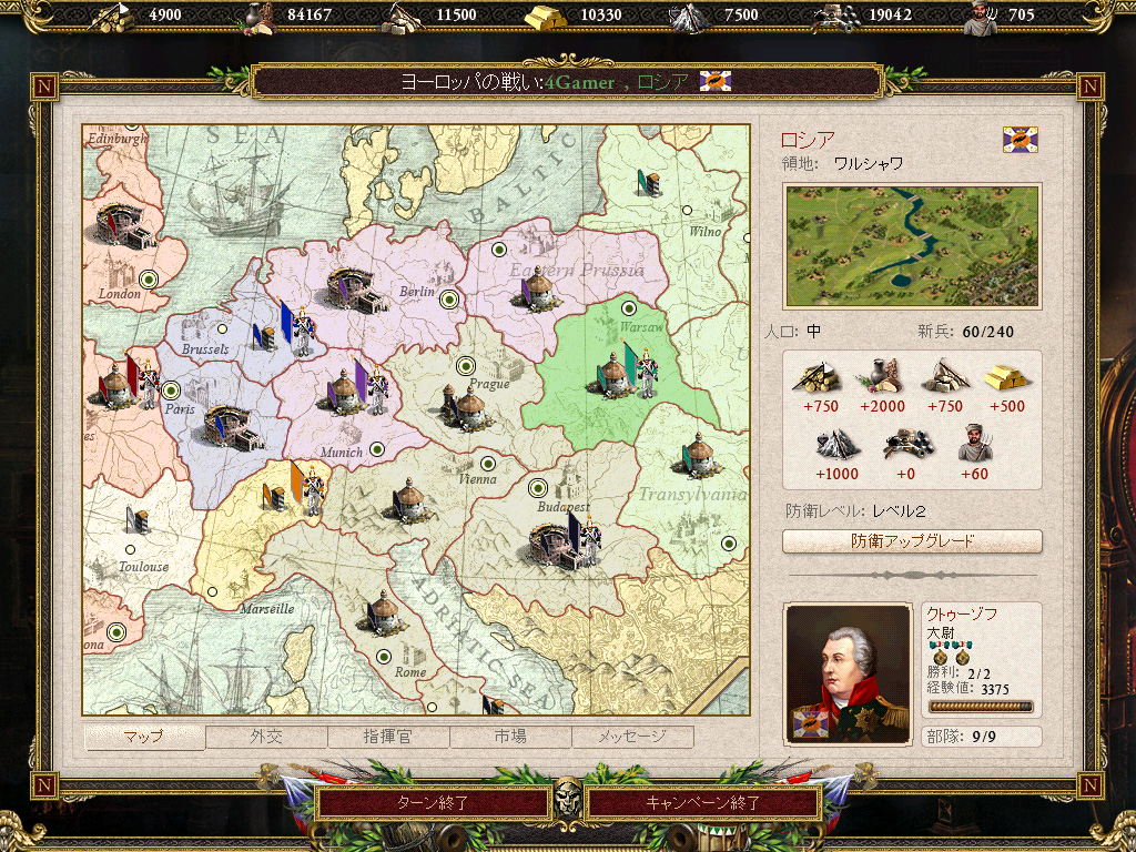 | 「ヨーロッパの戦い」モードからのショット。各マップには異なるイベントが散りばめられていて,プレイヤーを飽きさせない。部隊の育成要素も楽しく,本作の面白さが凝縮されたゲームモードとしてお勧めだ | ||