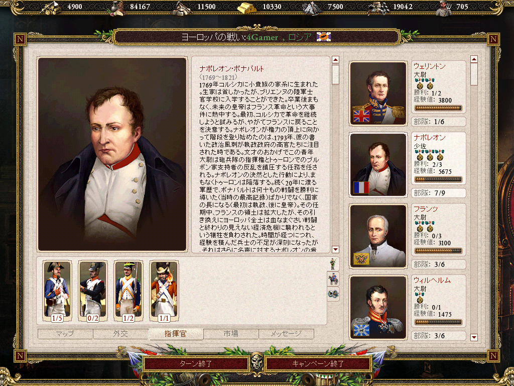 | ワーテルローなど,ナポレオン戦争に欠かせないいくつかの大会戦が登場していない。それらはアドオンに持ち越しということだろうか? |