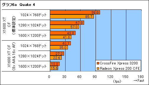 結果はグラフ6,6aのとおり。グラフ6では両チップセット間に差がほとんどないのに対し,グラフ6aではCrossFire Xpress 3200が明らかな形でRadeon Xpress 200 CFEに差を付けている点に注目したい。