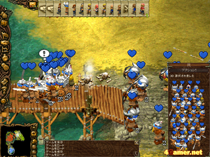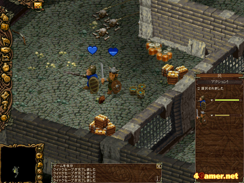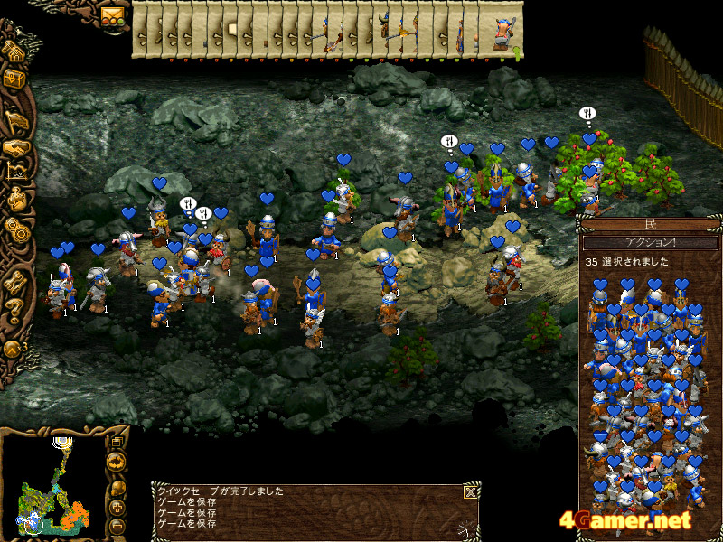 しかし,ときには勇者を含めた戦闘ユニットのみを操って,敵を蹴散らしながら先を目指すという展開も用意されている。生産手段のない環境で兵力を発見しつつ,それを失わないようにプレイを進める感覚は,「ウォークラフトIII」などRTSのシングルプレイキャンペーンに似ている。一般的な箱庭系ゲーム/都市建設シムではこのようなことはおそらくあり得ない。RTSの仕組みを使った都市建設シムである本作ならではの特徴だといえるだろう。