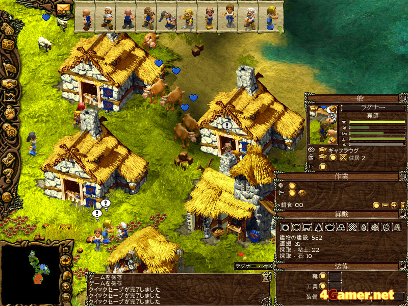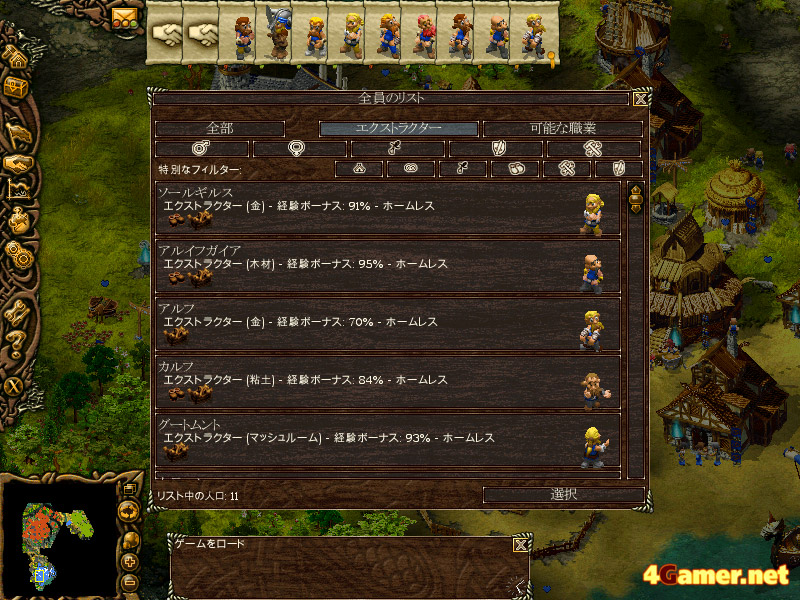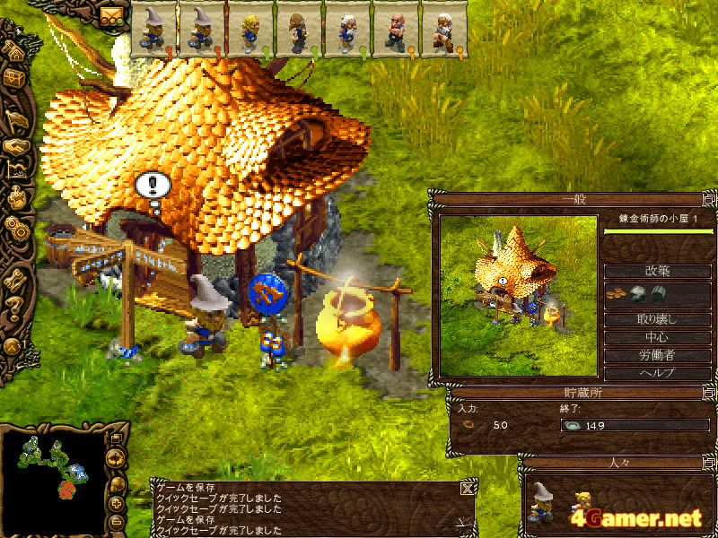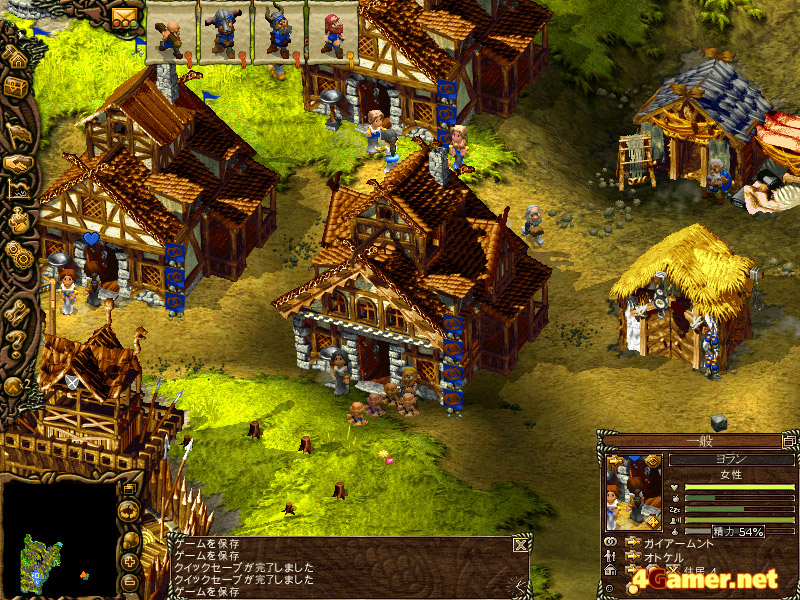 一般的な都市建設シムは,プレイヤーが建設や流通経路の整備,蓄財に集中できるようにデザインされている。その場合,町で働く人々は建物の付随物のように扱われることが多い。それに対してカルチャーズ2は,都市と同じくらいの比重で,そこに住む人々の管理に力を注がなければならないようにデザインされている。このあたりがとてもユニークなので紹介していこう。