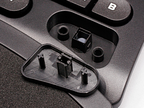 キースイッチはゴムキャップを利用したメンブレンタイプ。耐久性はさほどないが,FPSで使用するキーしか用意されていない“ゲームパッド”だから,問題はないだろう。通常利用するフルキーボードの[W/S/A/D]などをくたびれさせてしまうことなく,思う存分FPSに打ち込めるというわけである。ある意味消耗品と割り切って使うというのも,考え方としてはアリだ。