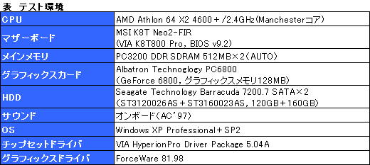 さて,ここからはゲームアプリケーションを利用した評価に移っていこう。今回はFPSタイトルの中から,「Battlefield 2」「Quake 4」「Serious Sam 2」を用いてみる。なお,テスト環境は以下の表のとおりだ。