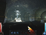 「AIは,プレイヤーのすることなら何でもする」とアピールされているDark Messiahだが,実際にプレイした限りではそれほど秀逸な思考ルーチンだとは感じられなかった。たしかに,複数で戦っているときには別々の方向から迂回して来たりもするのだが,先に挙げたスパイク付きの木製ラックを使ったトリックに簡単にはまってしまう。突き落としてくれ,と言わんばかりの位置に移動する敵もいるし,瓦礫や石棺の上に上ると,なぜか敵が攻撃してこないというバグっぽい行動も見られ,普通のレベルだ。