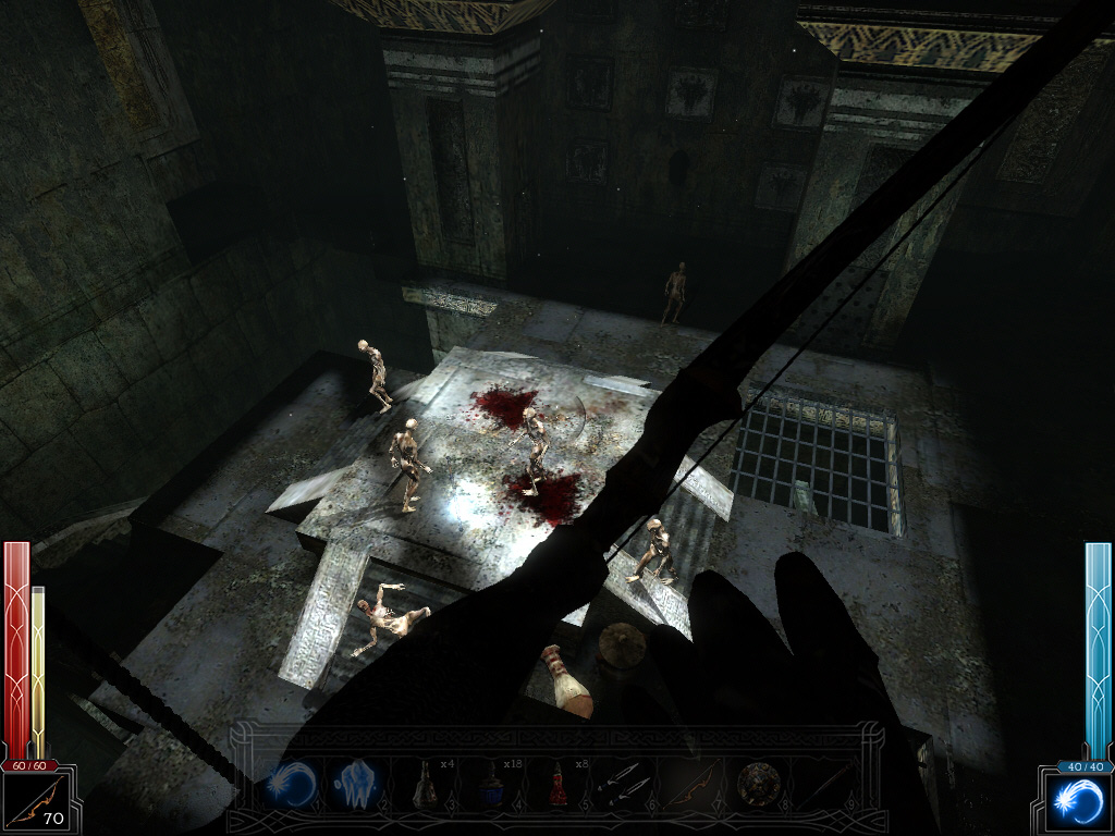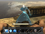 | 美しい景観が楽しめる屋外が少なく,同じようなダンジョンが多いのが本作のマイナスポイントの一つ。ゲームエンジンの性能が良いだけに残念 | 地下の墓場はゾンビでいっぱい。体の部位によって与えるダメージが異なる本作だが,何度も生き返るゾンビには胸を狙って弓を射るのがよい | キー操作でかなり異なった武器の振り回しぶりを見られるのも特徴だ。メレー系のキャラクターを育てるなら防御もマスターしておこう |