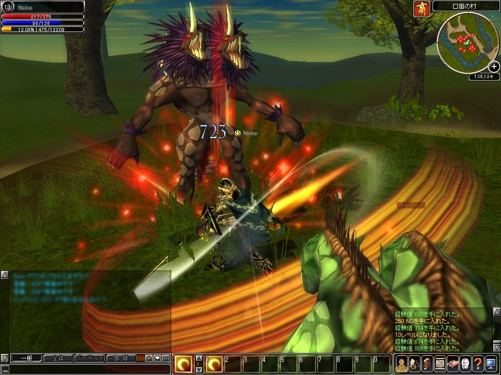 本作は,パーティプレイ時の経験値ボーナスが非常に大きくなっており,8人のフルパーティ時は105%の経験値ボーナスが加算される。つまり,ソロプレイ時と比べて2倍以上の経験値が得られるのだ。ここはぜひ,積極的にパーティを組んで遊びたいところ……なのだが,残念ながら今のところプレイヤー数が多いとはいえなのが現状。とはいえ,しばしばソロパーティ(パーティを組んで,それぞれのプレイヤーが別々に狩りをすること)の募集が行われているので,チャンスがあれば積極的に参加していくといいだろう。お世辞にもMMORPGの醍醐味である,プレイヤー同士で協力して戦う,というプレイスタイルとはいえないが,普段はゲームにあまり時間を取れない人にとっては,ソロでも遊べるという点は評価できる。