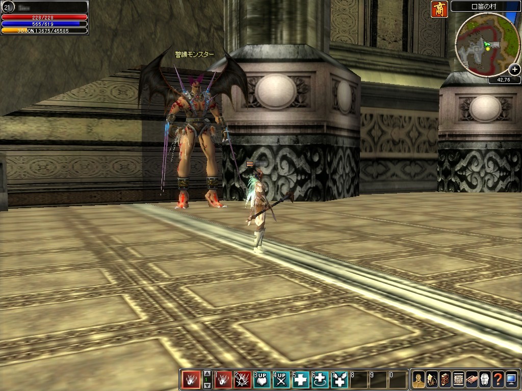 さて,比較的低スペックでも遊べ,やりこみ要素もそれなりにある本作ではあるが,ゲーム全体の完成度としてはやや物足りないものが感じられる。プレイをしていてまず真っ先に気づくことは,やたらと広い街中に,NPCがほとんどいないということだ。商人やトレーナーといった,“役割”を持ったNPC以外は一人もいない。こうしたNPCは街の中心ではなく,街の外周部に沿った形で点在しているので,プレイヤーはムダに走らされている印象を受ける。また,これに付随する問題として,本作にはクエストがほとんど存在しない。クエストをくれるべきNPC自体が存在しないので,クエストがないのは当然ではあるのだが,あまりにお寒い現状だといわざるを得ない。