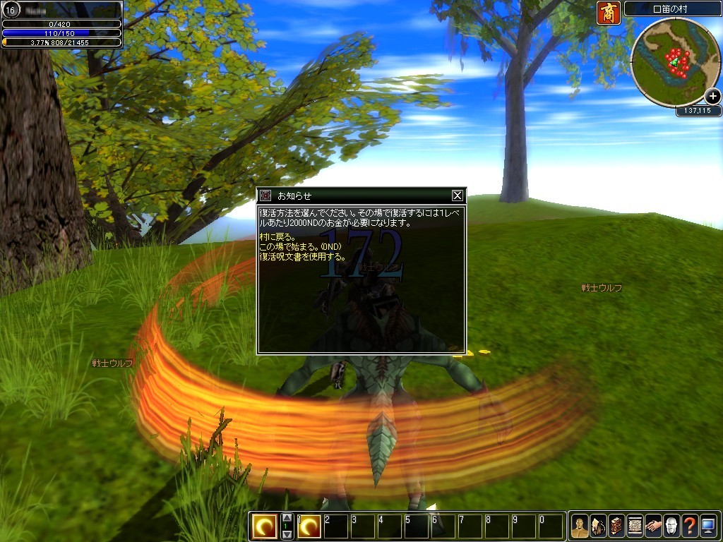 なお,本作ではレベルアップによって獲得したポイントを割り振って,ステータスやスキルを強化していくスタイルになっている。これを忘れると,レベルアップしても強くなったことをこれっぽちも実感できないので,お忘れなく。中級者以上向けの強化手段として,「月の欠片」による装備の精錬や,同種類の武器を二つ合成することによって強力な武器を作り出す,「デュアルウェポン」といったシステムも用意されている。