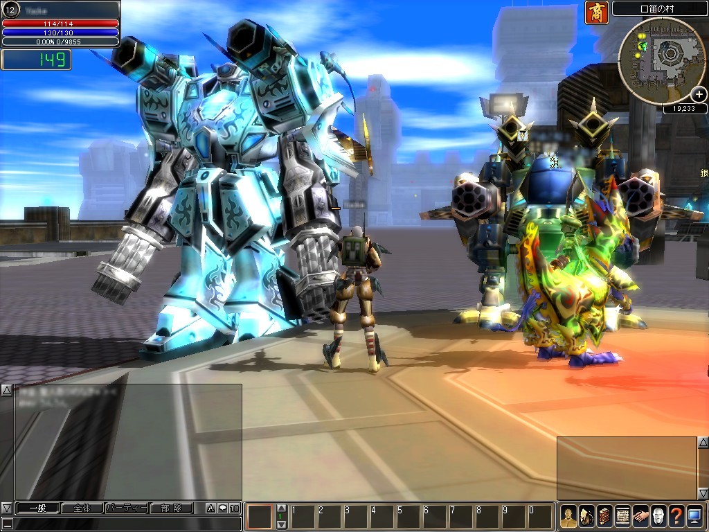 | プレイヤーが選択できるクラスは「戦士」「魔法士」「召喚士」「機攻士」の四つ。中でも,巨大なメカに乗って戦う機攻士は見どころの一つ。搭乗に必要なレベルは100 | |